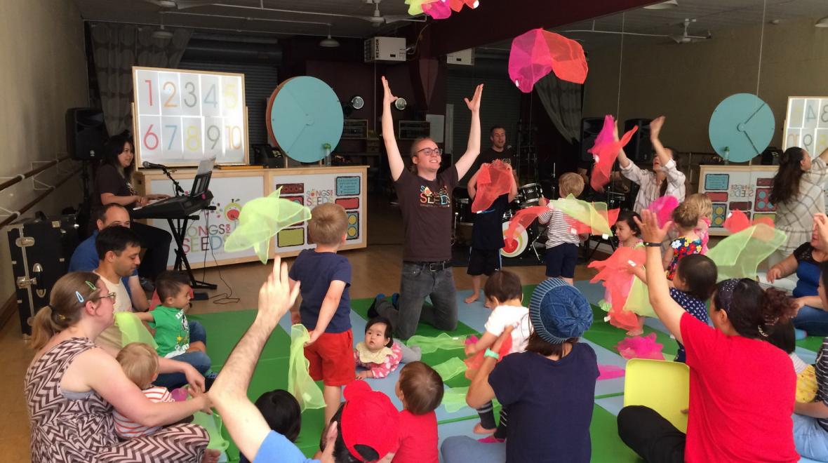 The class is designed with repeatable and consistent sections that change slightly each week. This is important because kids love consistency and after a while many build the confidence to come sing on the mic or help the teachers act out sections. At the end of each class kids get to play on the musicians’ instruments.