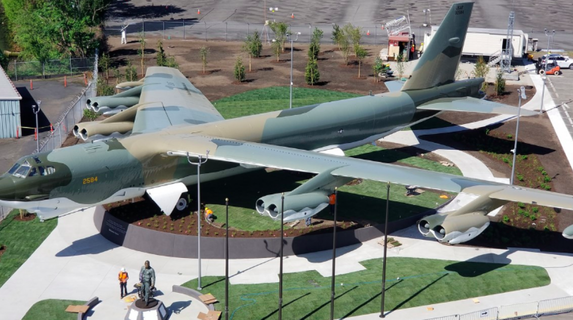 The centerpiece of the park is the Museum’s B-52G Stratofortress 59-2584 Midnight Express, which was carefully restored by a team of dedicated volunteers. The B-52 flew during Operation Linebacker II and sat quietly at Paine Field in Everett, Wash. for 28 years before Project Welcome Home gave it a new life. A Vietnam airman statue carrying a folded American flag joins the plane; created by artist James J. Nance, the airman represents all those who returned home from combat, while the flag represents those who did not return.