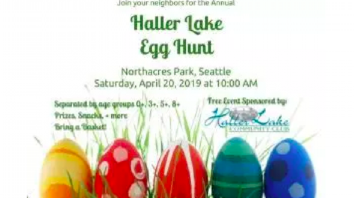 Prizes, snacks and more! Bring a basket! Egg hunts start at 10 a.m. Separated by age groups, 0+, 3+, 5+, 8+ Event Details When No upcoming dates scheduled Price Free Recommended Ages Ages 0-10 Venue Northacres Park 12718 1st Ave NE Seattle, WA 98125 United StatesGet Directions http://www.hallerlakecommunityclub.org/event/haller-lake-egg-hunt-4/