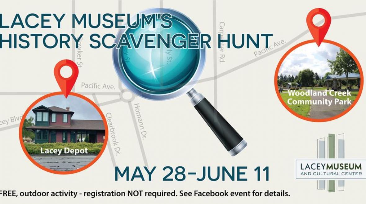 Explore the Lacey Train Depot and Woodland Creek Community Park from May 28 through June 11 to search for markers highlighting historical places and people, and learn some fun facts about the area’s history along the way! The scavenger hunt starts at the parking lot across from the Lacey Train Depot (5555 Pacific Avenue SE) where you’ll find directions and clues for all of the scavenger hunt markers attached to the “new museum” sign. Find some historical places and people at the Lacey Train Depot, then head over to Woodland Creek Community Park to continue the search!
