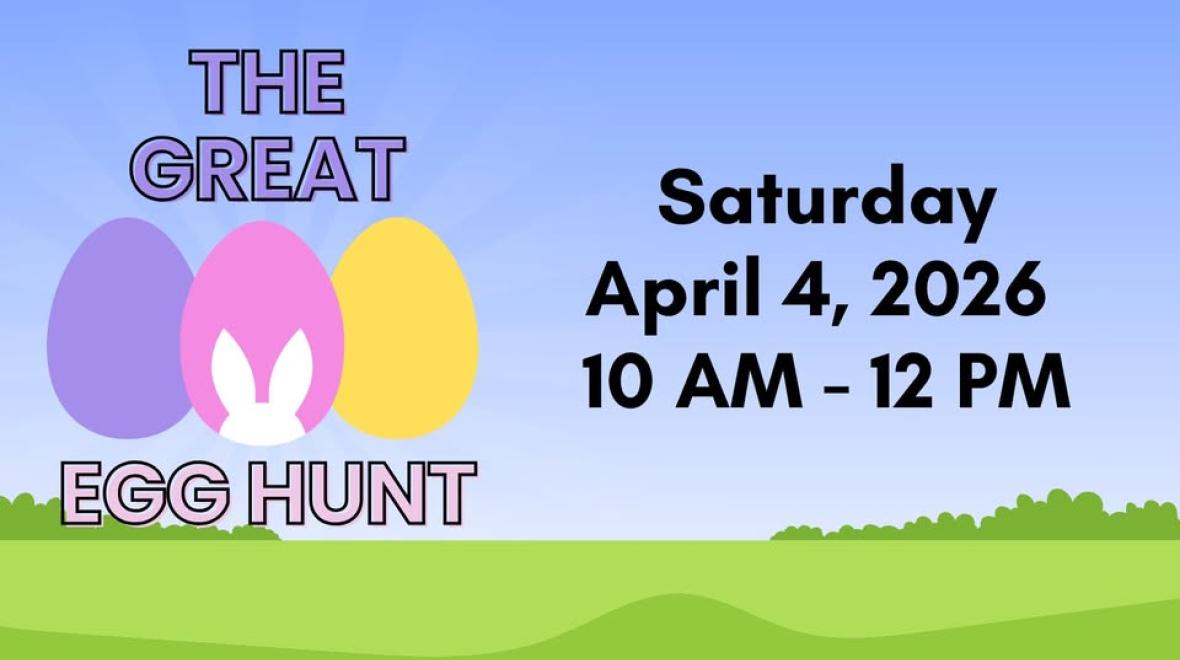 Join The City for a free community Egg Hunt, at North Cove Park, on Saturday, April 4, 2026, 10 AM - 12 PM, for ages 0 - 10.