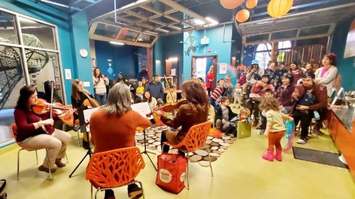 All responses to the music are welcome! Children enjoy an engaging program of classical pieces and popular Disney tunes with scarves and bubbles, followed by hands-on instrument exploration time. NWS is proud to offer these FREE low-sensory concerts for families at Tacoma Children’s Museum in partnership with Greentrike.