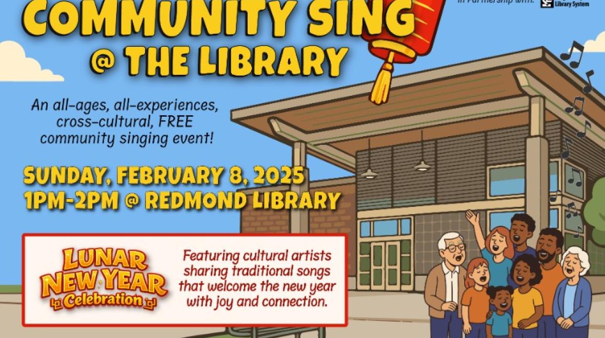 You're invited to a Community Sing @ The Library! Join us at the Redmond Library for a fun-filled hour of music and connection. Bring your friends and family for an all-ages, all-experiences, cross-cultural, FREE community singing event! This session will be a Lunar New Year Celebration featuring cultural artists sharing traditional songs that welcome the new year with joy and connection.