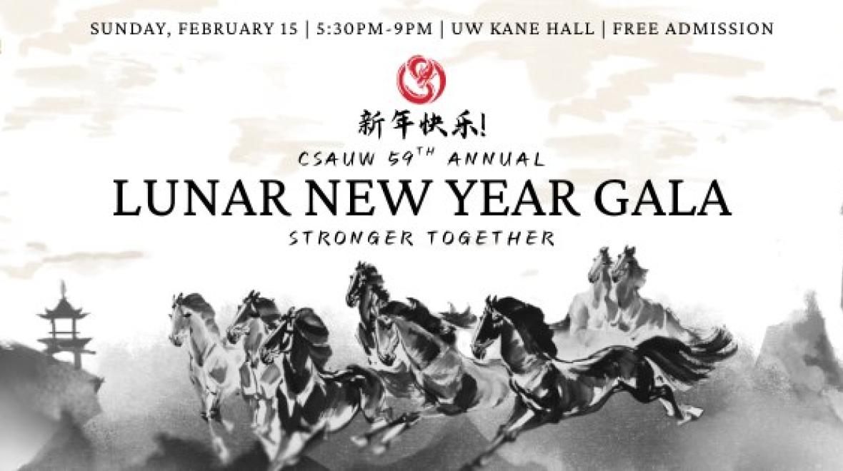 The Chinese Student Association at UW, with help from our wonderful sponsors, invites you to ring in the Year of the Horse with us at our 59th Annual Lunar New Year Gala!
