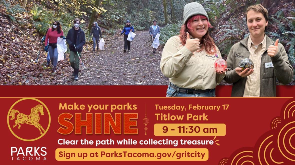 Clean up areas around Titlow Park while hunting for monkeyshines! Stop by the lodge where Park Guides will be on-site to offer education about Lunar New Year and monkeyshines. Plus, we’ll be offering trash bags, grabbers and gloves to use as you look for monkeyshines.