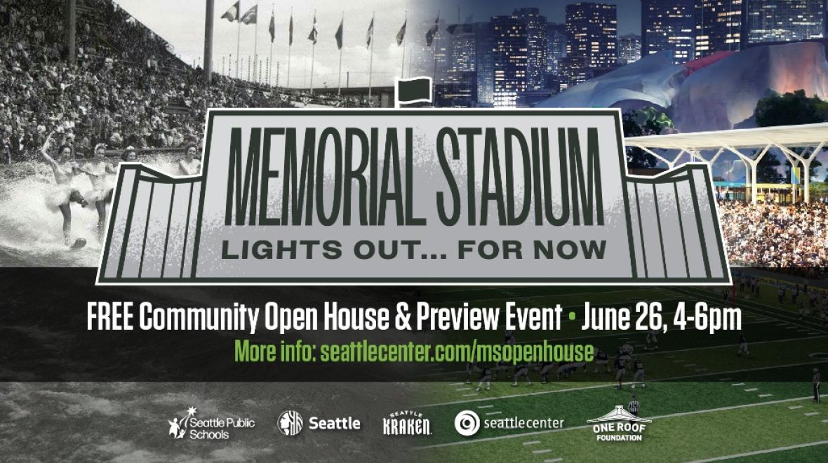 It’s lights out for the Seattle Public Schools’ iconic Memorial Stadium at Seattle Center . . . at least for now, as the stadium prepares for a two-year $140 million transformation beginning this summer. But first, the community is invited to an open house event to relive their memories, say a fond farewell, and learn about the exciting plans for Memorial Stadium’s future.