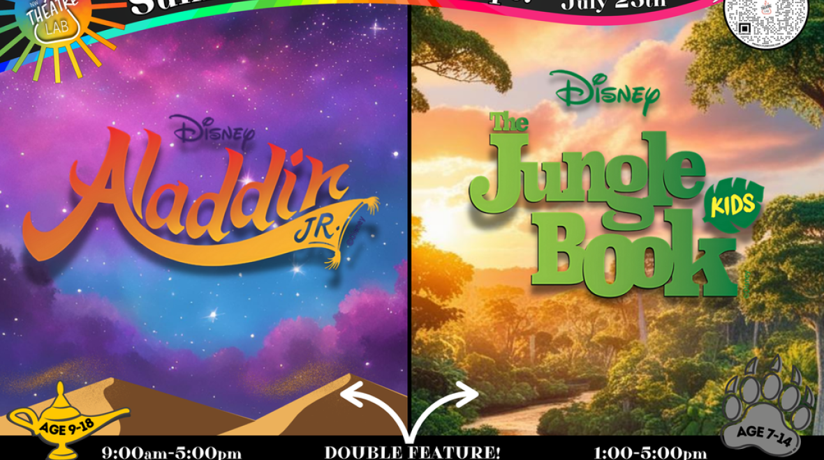 Join us for Northwest Theatre Lab’s Summer Double Feature as our talented young performers bring you Disney’s Jungle Book Kids and Disney’s Aladdin Jr. in one magical afternoon of adventure!
