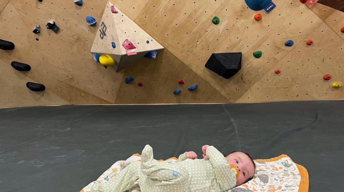 Wavers are required for both the climber and baby. Day pass, punch card, or membership required for the climber.