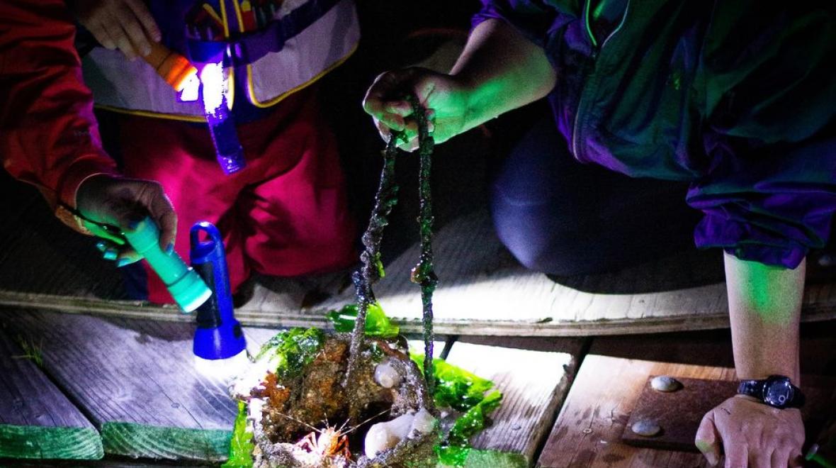 Come discover the mysterious creatures that live below the pier at Boston Harbor Marina! Our trained biologists provide underwater lights that attract spectacular estuary creatures for you to safely scoop up and observe, while our volunteer Beach Naturalists help you identify and learn more about what you’ve found. From octopus to anemones, from sea stars to sea slugs, you never know what you’ll encounter! Pier Peer is one of our most popular events, so register early to ensure your spot.