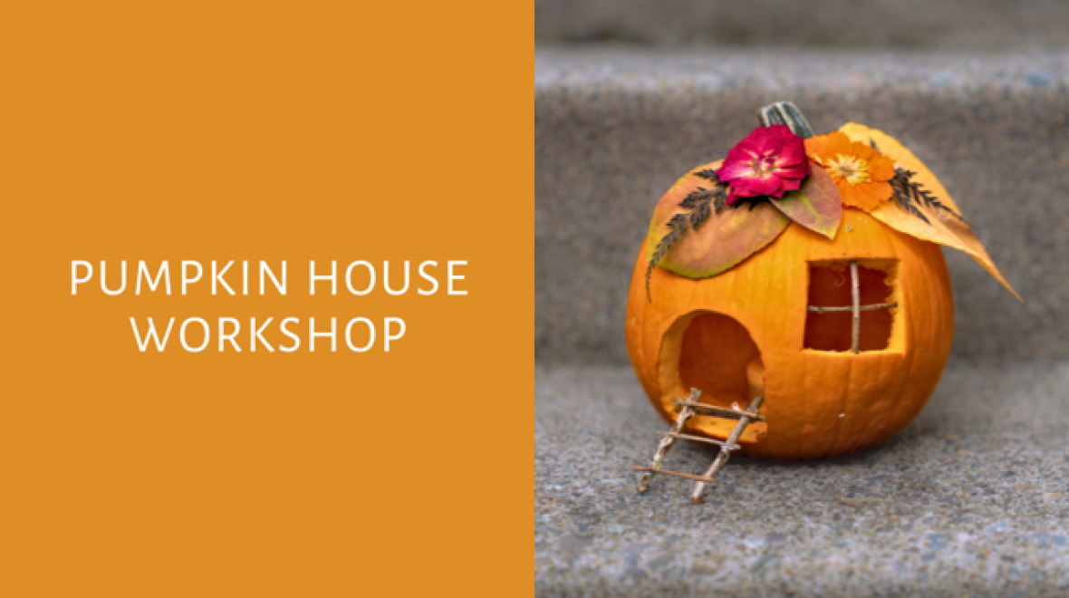 Bring your family and any medium sized pumpkin. Learn some pumpkin carving basics. Then each family will work together to carve and embellish their very own pumpkin house using twigs, leaves, and pressed flowers. During the process of this activity children must be supervised by their guardians. Concluding this activity we invite you and your family to listen to a special tale about a mouse and his pumpkin house!