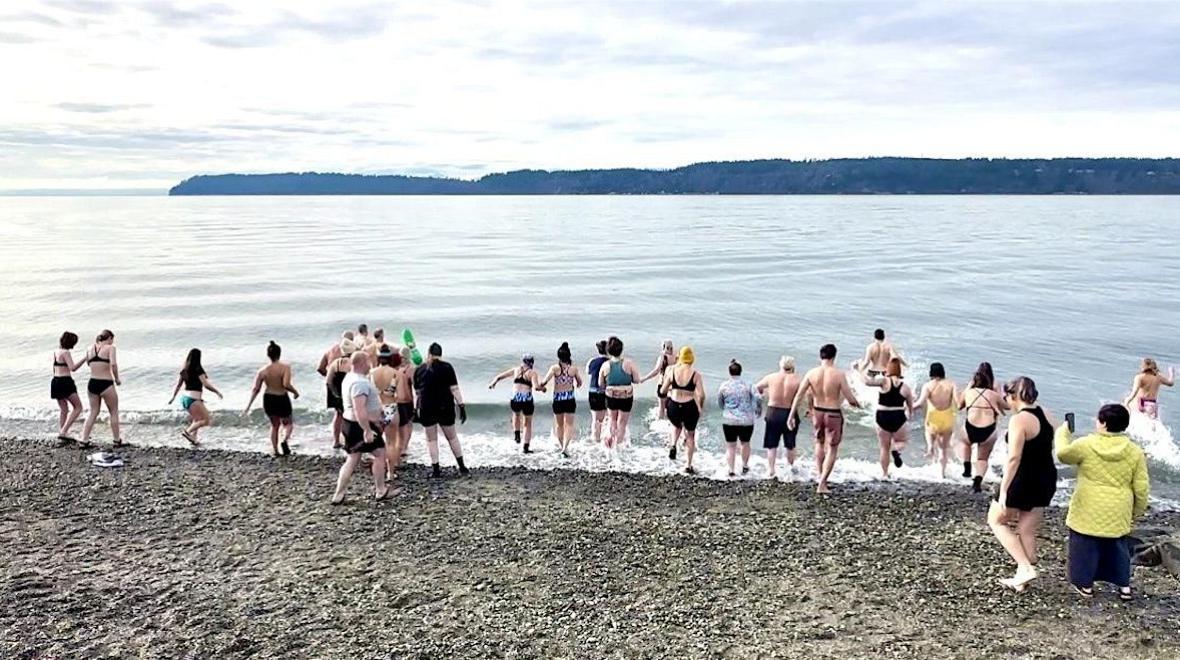 An Invigorating New Year's Day Plunge into the chilly waters of the Puget Sound
