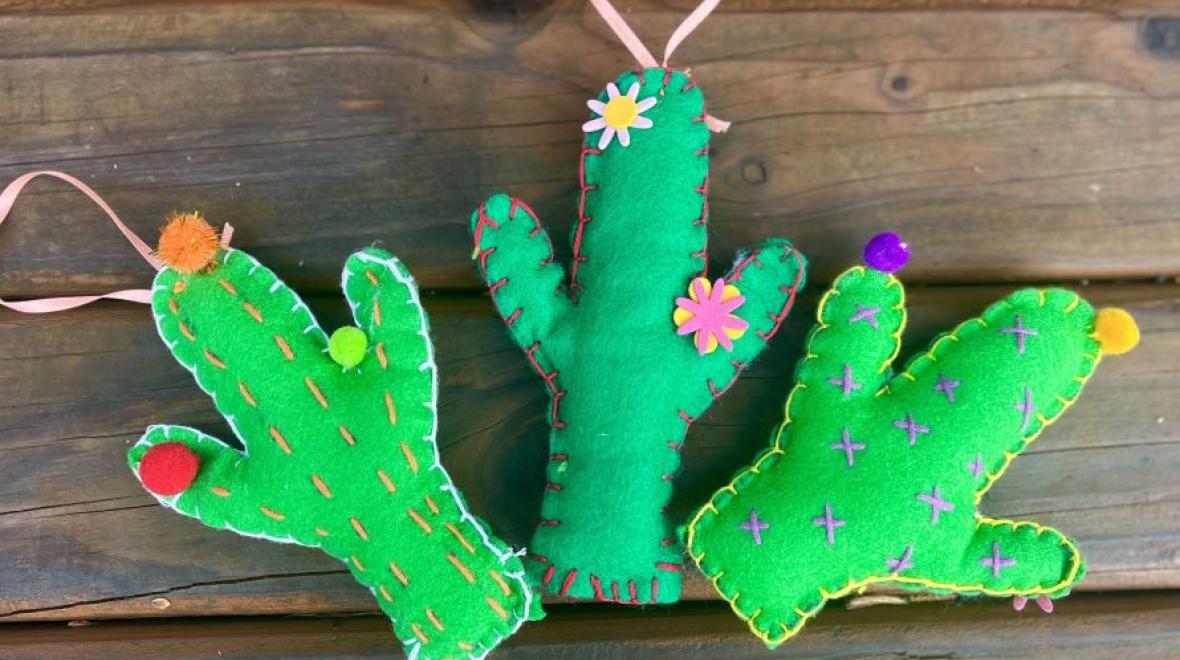 Learn basic embroidery techniques by creating and personalizing a ‘sahuaro cactus’ using felt and colorful threads.