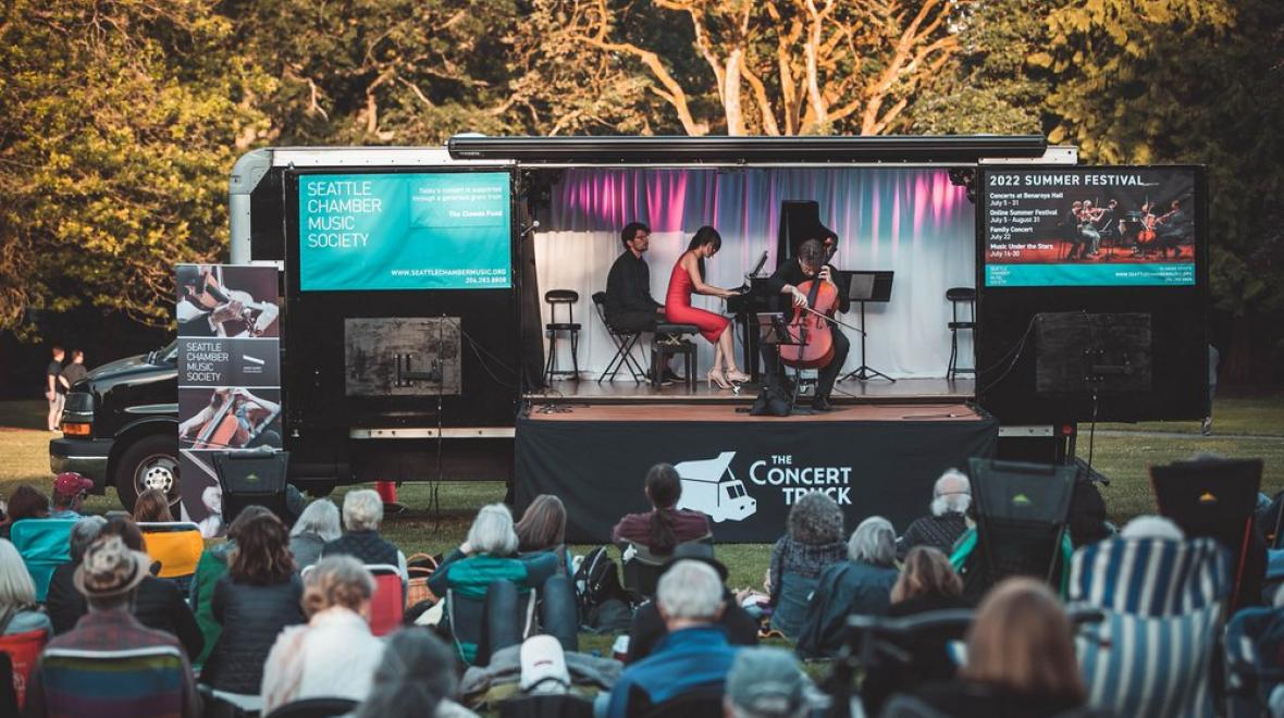 - Enjoy a free, lunchtime performance of classical music by the Seattle Chamber Music Society Concert Truck on Crabapple Meadow, located just south of the Visitors Center along Arboretum Drive.