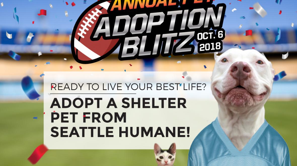 "Our mission at Seattle Humane is to make owning a companion pet accessible to all King County-area residents," says Chief Operations Officer Lisa Drake. "Although our standard fees are low-cost, the Adoption Blitz helps us reach even more wonderful animal lovers who want to open their hearts and homes to an animal who needs a family."
