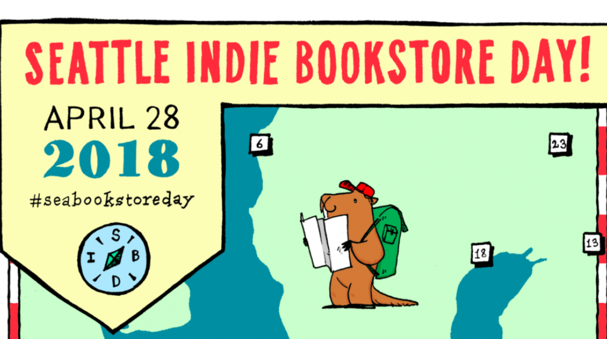 On Independent Bookstore Day, official Passport Maps are available at every participating Seattle-area store. (The stores are listed below.) On one side is a map, and on the other is a list of every participating store, with address and contact information.