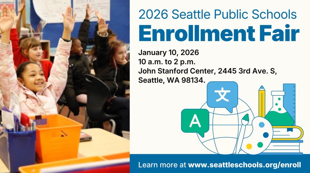 Opportunity begins in Seattle Public Schools! To showcase all the district has to offer, SPS is inviting Seattle-area families to the 2026 SPS Enrollment Fair on Saturday, Jan. 10 from 10 a.m.-2 p.m. at the John Stanford Center, located at 2445 3rd Ave South, Seattle, WA 98134.