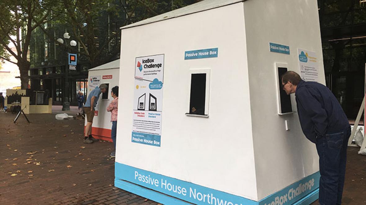 Climate change on your mind? Participate in the unveiling of Seattle’s 1st Ice Box Challenge “Ice Reveal” on Thursday, September 28th at 12:15pm sharp and learn about how we can build climate hope. During this year’s Seattle Design Festival, Passive House NW and NK Architects with support from local businesses and thought leaders constructed two mini-houses in Pioneer Square – one built to standard building codes and the other built to Passive House standards. Inside each box is 1,200 pounds exposed to some warm September weather for 20 days. Join the community and decision-makers such as Jessica Finn Coven, Office of Sustainability and Environment and Patti Southard, the program manager for “GreenTools” green building program in King County to kick-off a community-wide conversation about how we can come together to create climate hope.