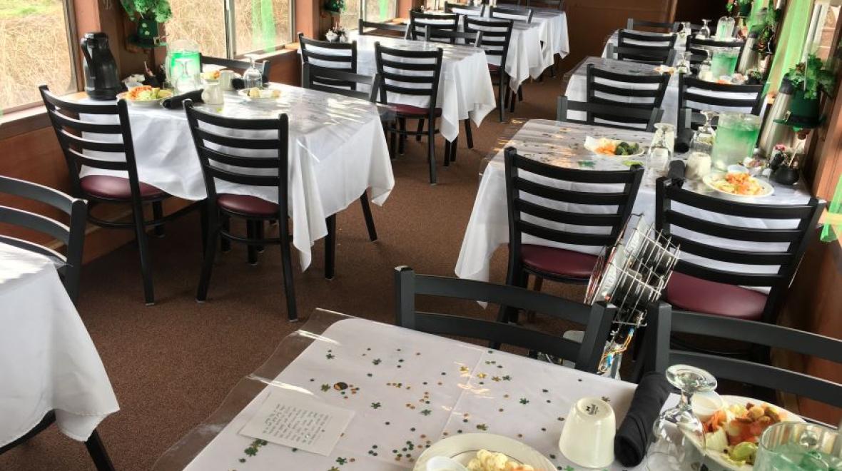 The St. Patrick’s Day dinner train leaves the depot each March and travels through the Chehalis River Valley as passengers enjoy a specially themed dinner in our dining car. Dress warm as the trains are unheated.