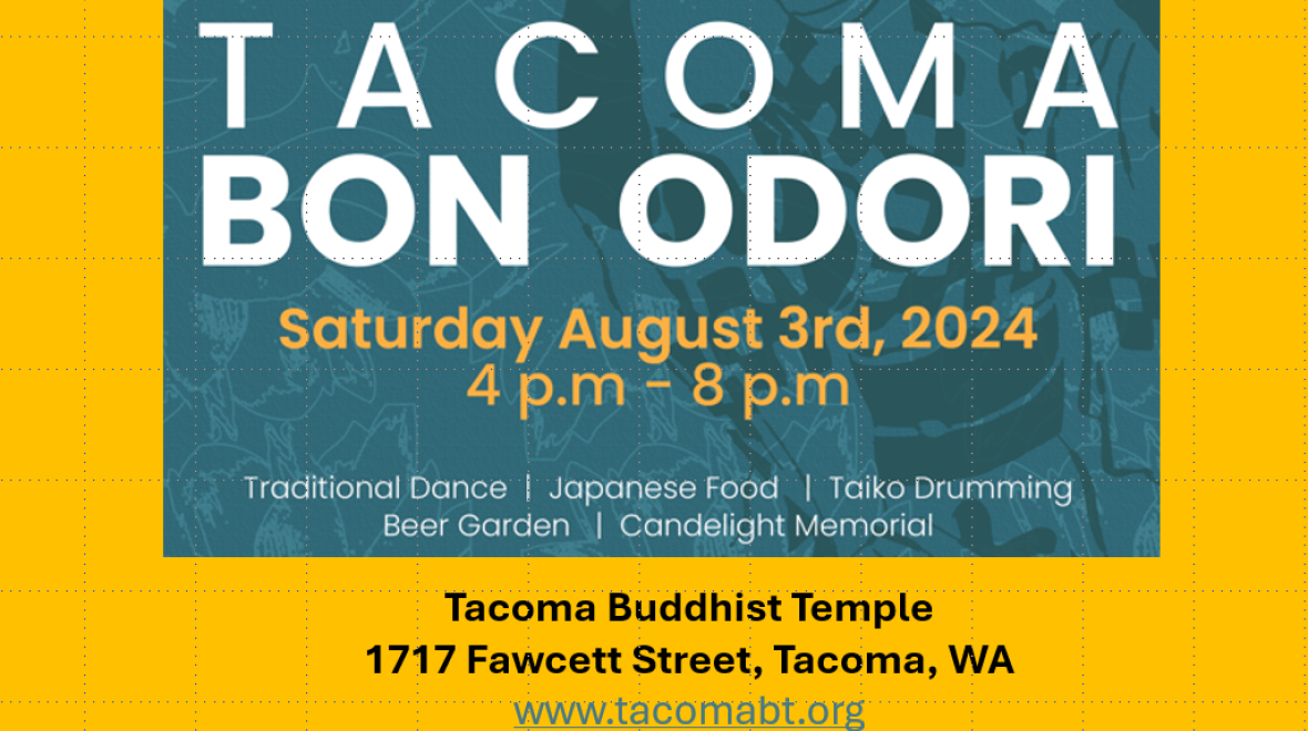 5pm: Dancing and taiko drumming will occur in front of our temple on Fawcett Avenue up from UW Tacoma.