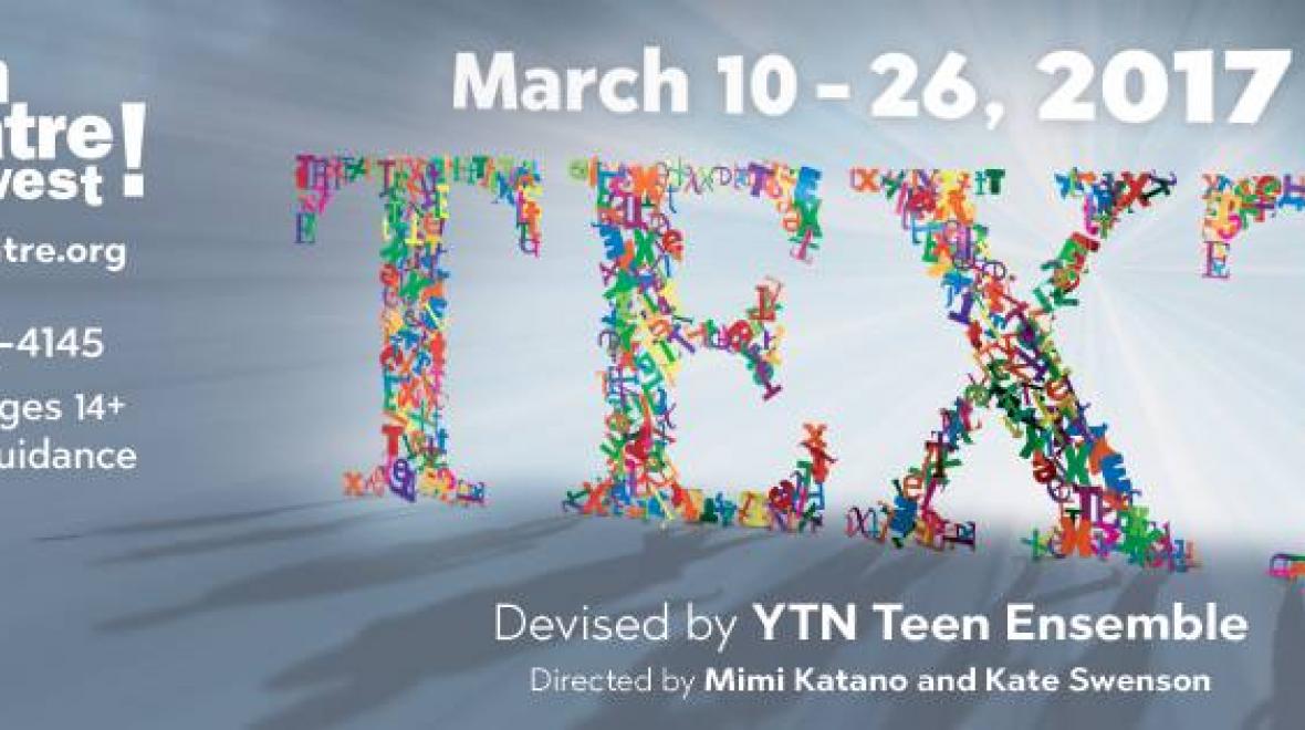 TEXT , an original show devised by the YTN Teen Ensemble, uses original scenes, music, and movement to present the lives of two different groups of friends. Some characters face universal trials like: stress, school dances, sexuality, and navigating the growing pangs of friendship. Others grapple with additional issues from depression to eating disorders. A moving and often humorous glimpse into the lives and hearts of teenagers told in their own authentic voices.