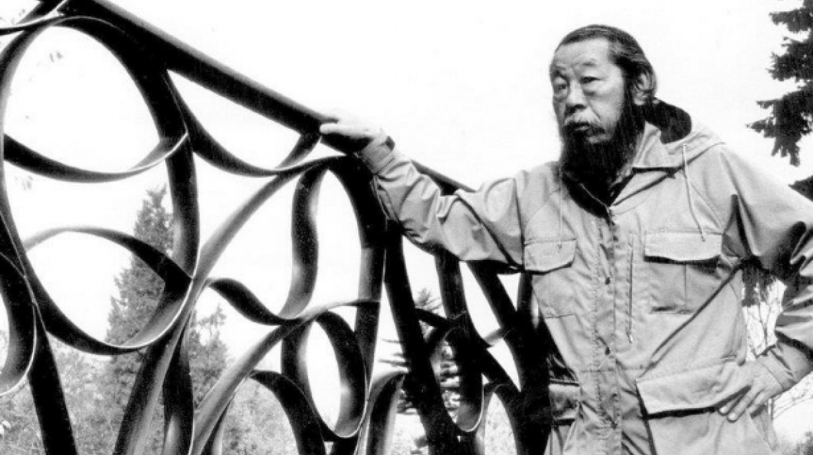 Image: George Tsutakawa next to the Memorial Gates in 1976 (courtesy Josef Scaylea/The Seattle Times).