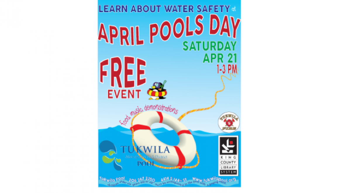 Tukwila Pool’s annual April Pools Day will be Saturday, April 21st and is a FREE event! This community event will feature water safety demonstrations, KCLS story time, open swim and the Tukwila Fire Department will be back with their Fire Rescue Boat! Please join us for safe, fun in the water.