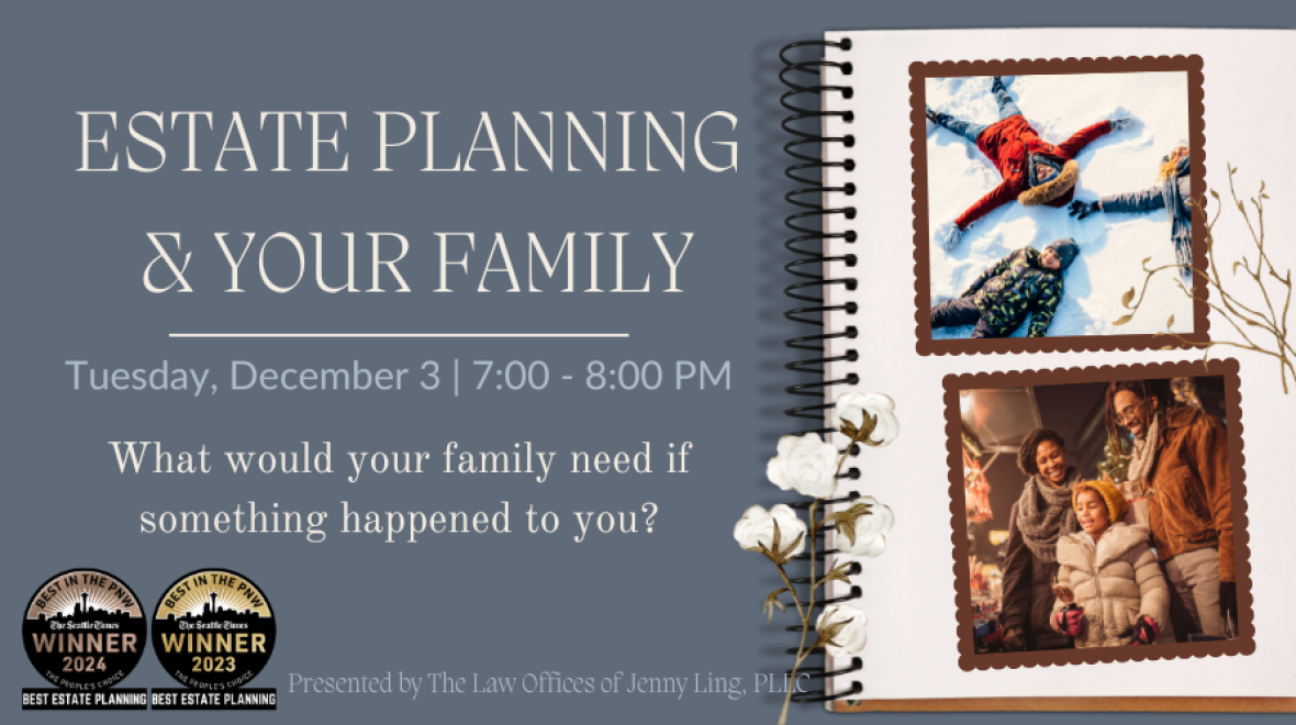 Join Kristy Hoad, estate planning attorney with offices in Seattle and Bellevue, at this free virtual event where we will delve into the intricacies of comprehensive estate planning. Discover how to leave a legacy that extends beyond finances, providing your family with peace of mind and clarity about your wishes. Don't miss this opportunity to gain invaluable insights and take proactive steps to secure your family's future. Join us and empower yourself with the knowledge to protect what matters most.