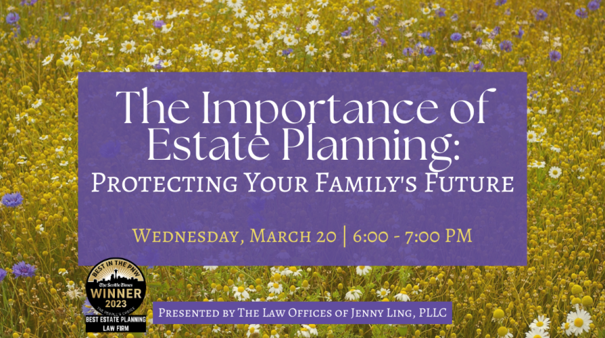 Join Jenny Ling, estate planning attorney with offices in Seattle and Bellevue, to learn how to protect your family's future with proper estate planning.