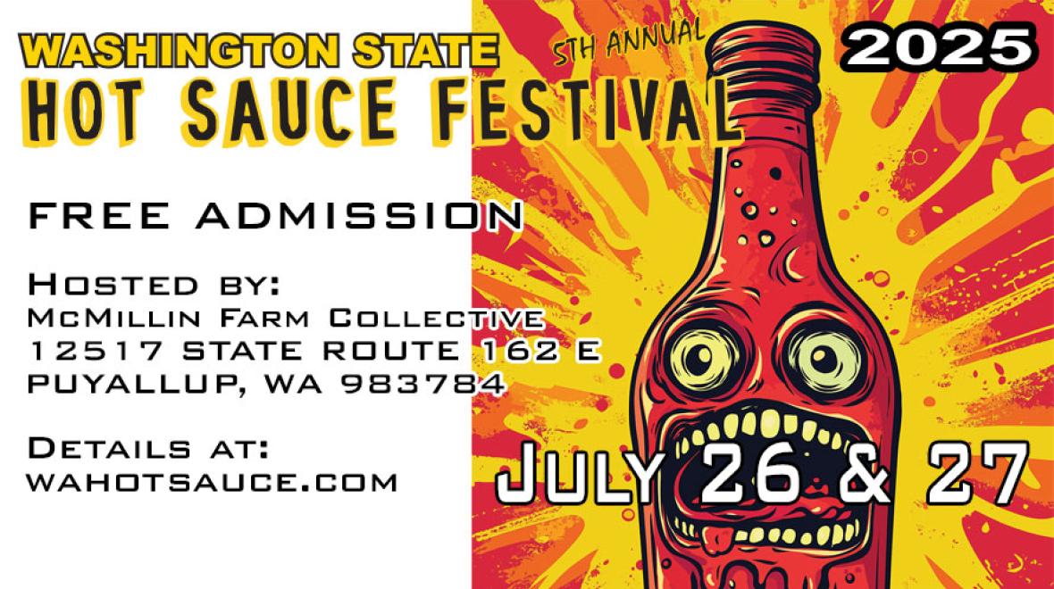 Get ready for the hottest weekend of the summer! The Washington State Hot Sauce Festival is back and bigger than ever — celebrating bold flavors, spicy heat, and family-friendly fun. Explore dozens of local and regional vendors, sample unique craft hot sauces, and enjoy a full day of entertainment — all with FREE ADMISSION.