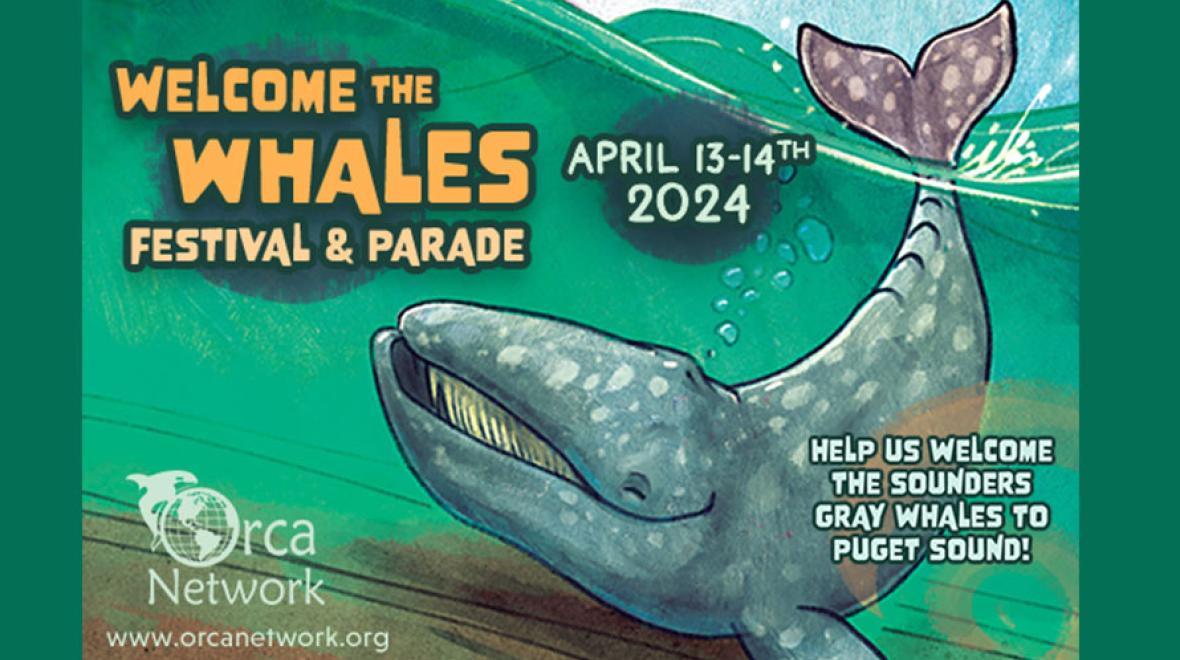 Each year, a small group of gray whales, affectionately known as The Sounders, detours from their main migration and returns to Puget Sound to feed on ghost shrimp. Our 2024 Welcome the Whales Festival honors these well-known and beloved whales with costume making, a critter parade, waterside ceremony, Langley beach clean-up, special presentation from Cascadia Research Collective, and a fundraising boat trip.