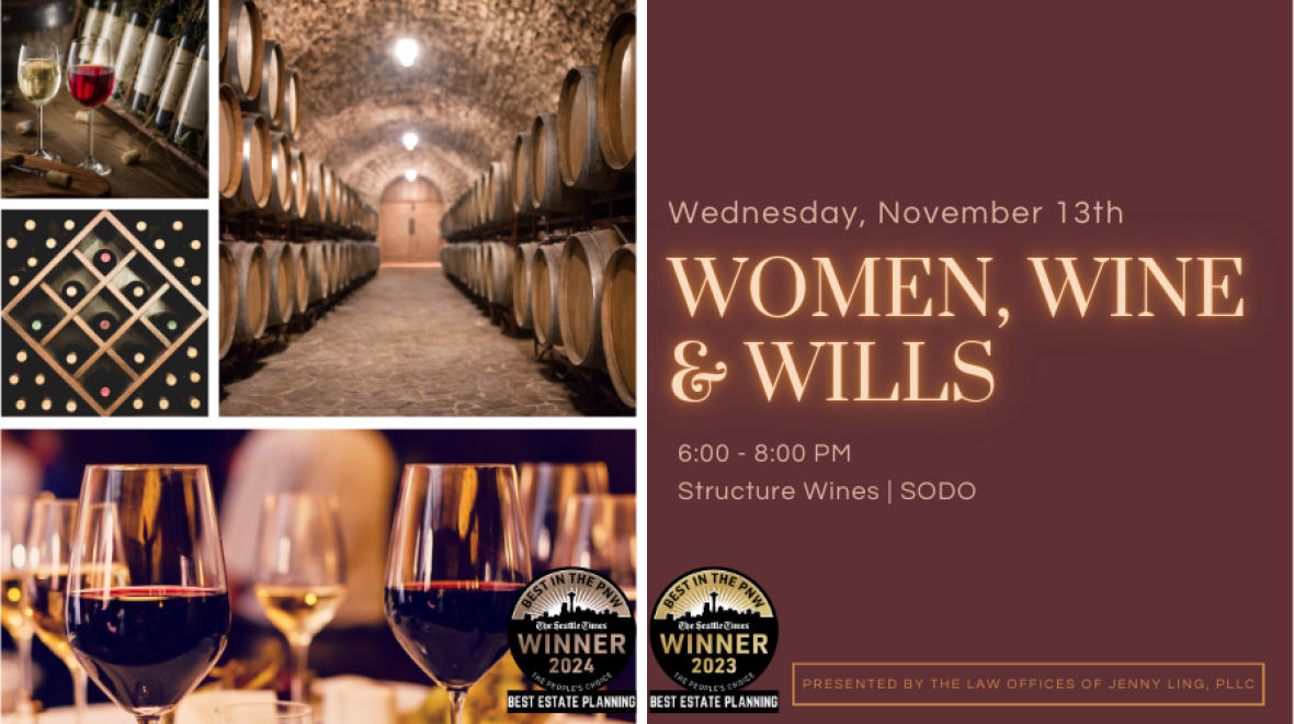 Enjoy a glass of wine and meet Jenny Ling, an experienced estate planning attorney, at this FREE, in-person event at Structure Wines in SODO.