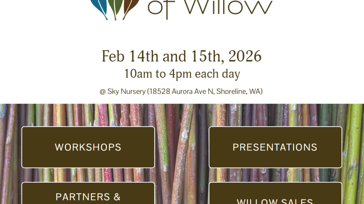 Join us for a first-of-its-kind community event celebrating willow— a remarkable plant that restores streams, weaves baskets, increases biodiversity, and creates habitat across the Pacific Northwest. Discover species that can enrich home gardens, wild spaces, and farms.