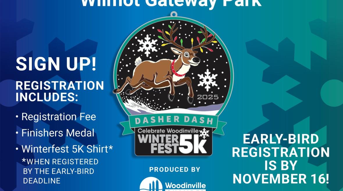 Celebrate the season together at the Winterfest 5k Dasher Dash! Join us at Wilmot Gateway Park on December 6, 2025 and make every step count. Your participation will benefit the Woodinville Chamber and the Forgotten Children’s Fund.