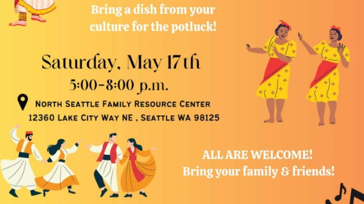 Join us Saturday, May 17th from 5:00-8:00 pm at North Seattle Family Resource Center (located at 12360 Lake City Way NE, Seattle WA 98125).