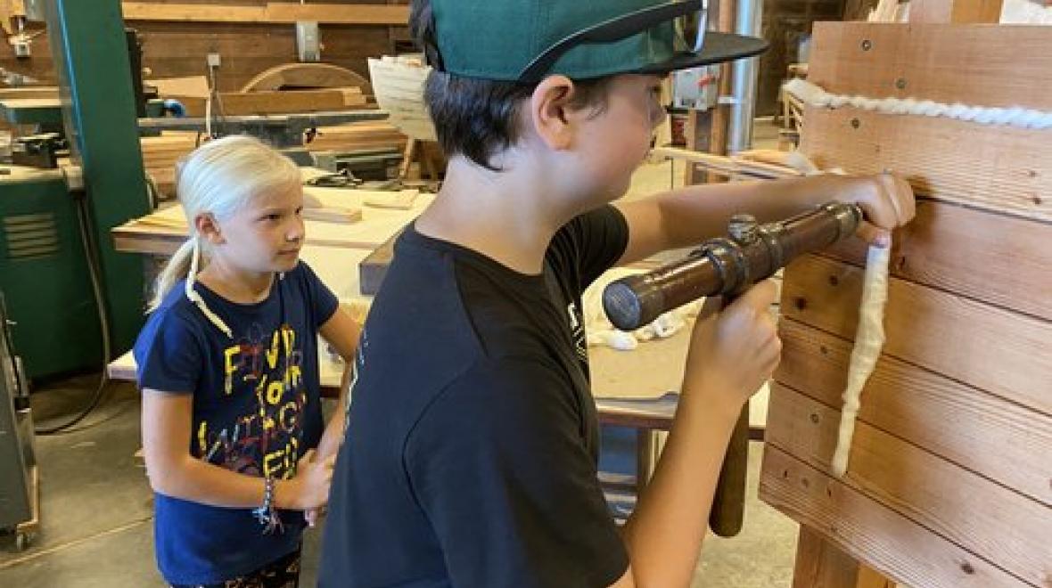 Our Young Hands, New Skills program introduces kids to traditional boatwright skills including ship caulking, hammering boat nails, using a spokeshave, hand-sawing, and more. During the session we will have stations set up around the joiner shop where kids learn to use basic hand tools with one-on-one instruction from our experienced volunteers. Participants will develop an understanding of how each skill applies to traditional wooden boat building.